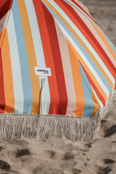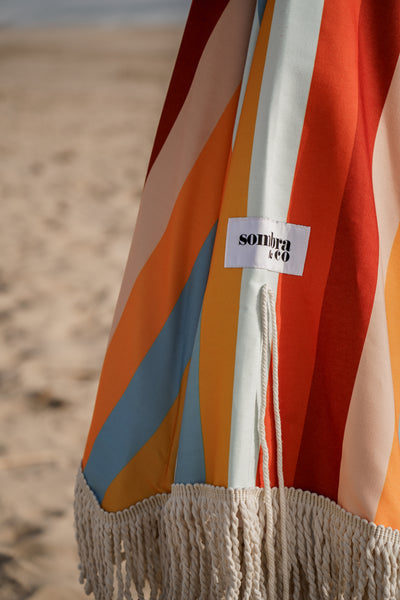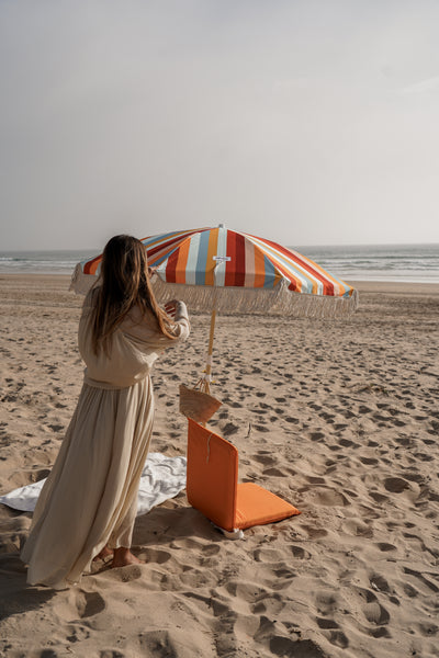 Um guarda sol grande de estilo vintage e cores personalizadas. Desenhado para dias ensolarados e verões intermináveis para a Praia e Jardim. Antes de reservar o seu lugar à sombra fique a saber mais sobre os chapeus de sol.