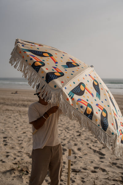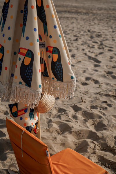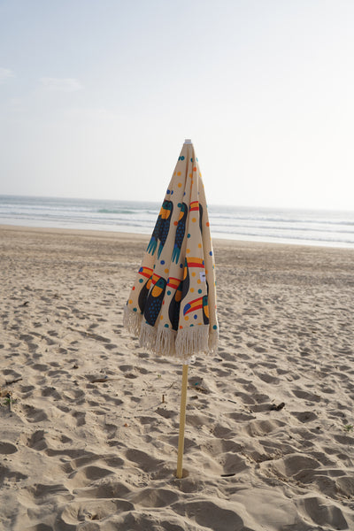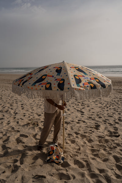 Um guarda sol grande de estilo vintage e cores personalizadas. Desenhado para dias ensolarados e verões intermináveis para a Praia e Jardim. Antes de reservar o seu lugar à sombra fique a saber mais sobre os chapeus de sol.